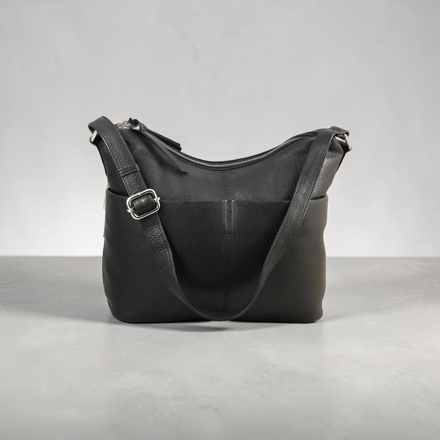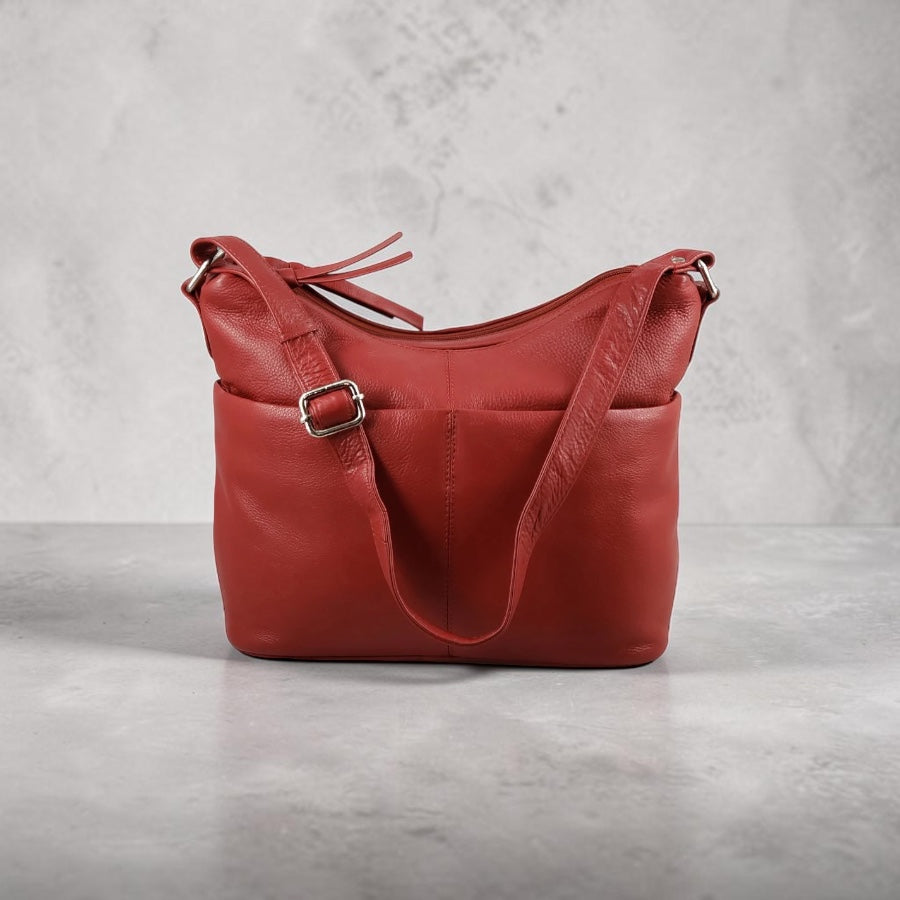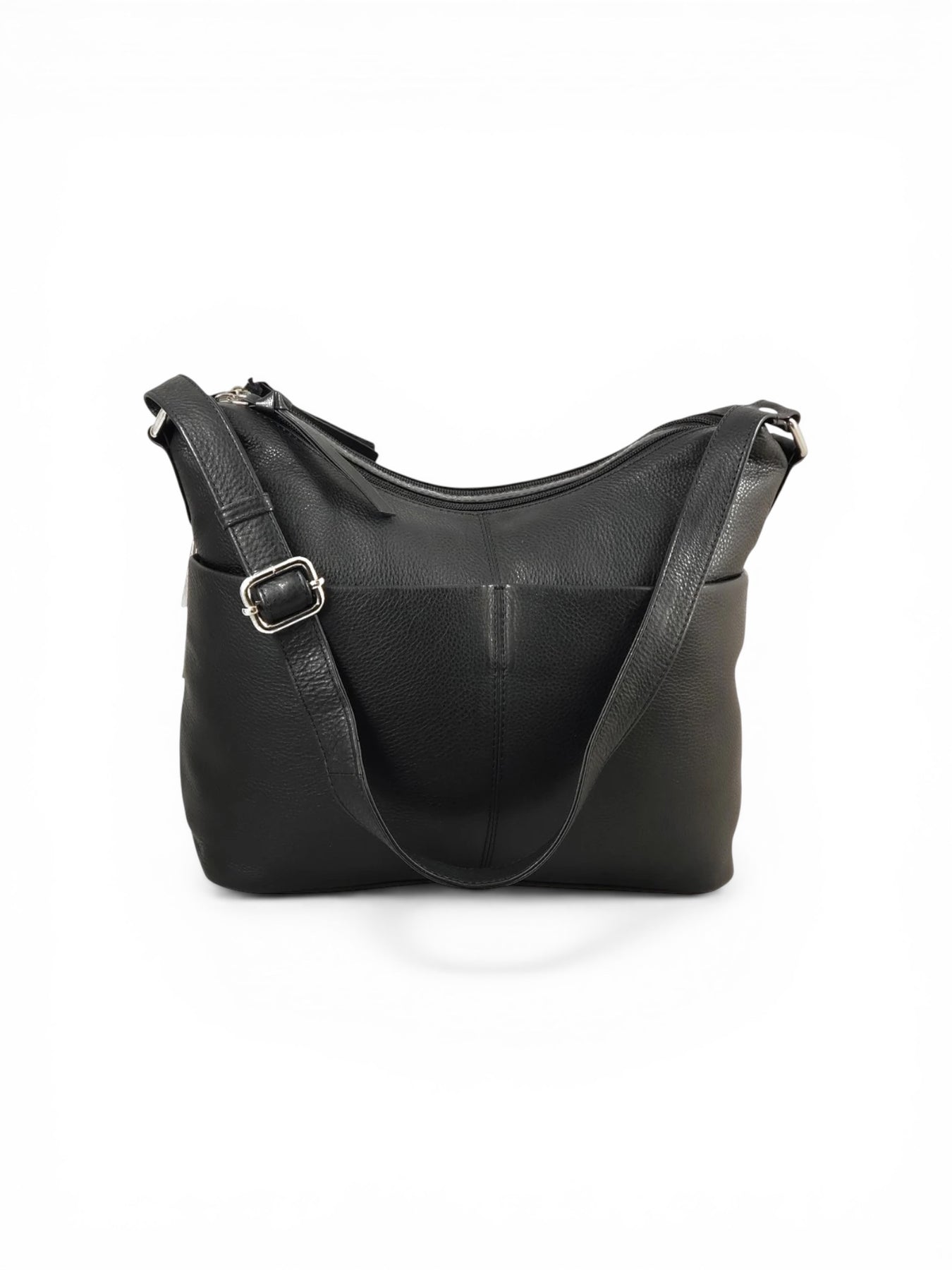 This fine Pielino hobo handbag is made from high quality soft genuine leather. Great for travel, work, and everyday use. Size of bag: 12" L x 9.5" H x 5" W. There is a convenient rear zippered pocket for your keys, etc. and 2 front magnetic closure pockets. Fully lined interior has cell phone pocket, sunglass pouch, and additional zippered wall pocket for your essentials. Quality never goes out of style. This handbag is made of high quality genuine leather and excellent craftsmanship.