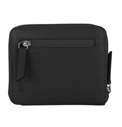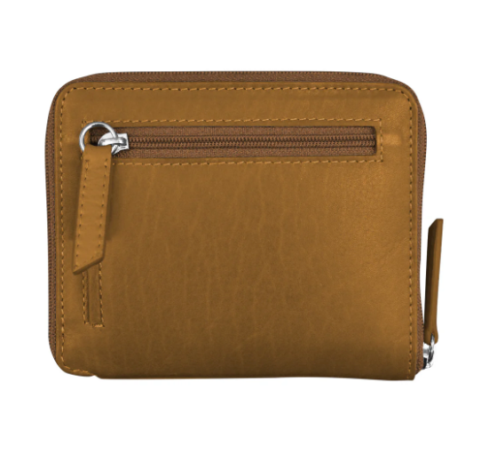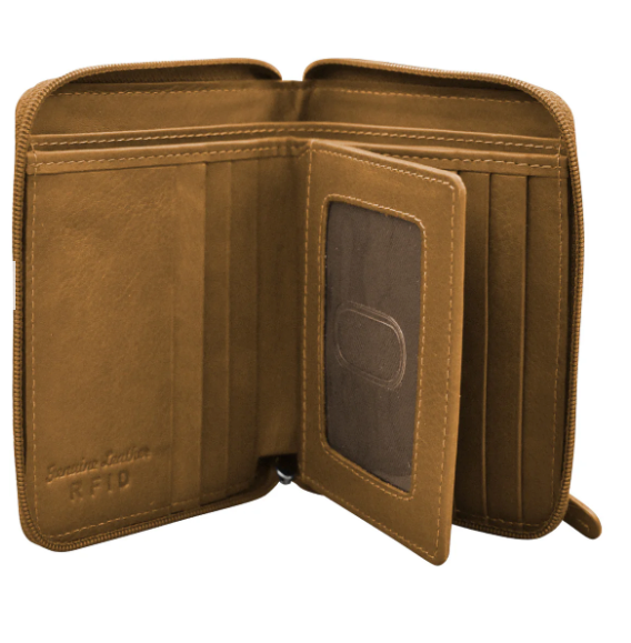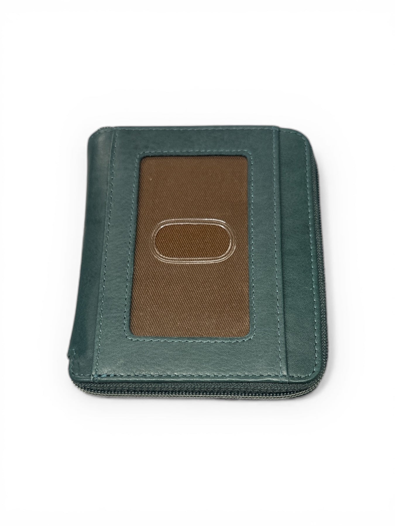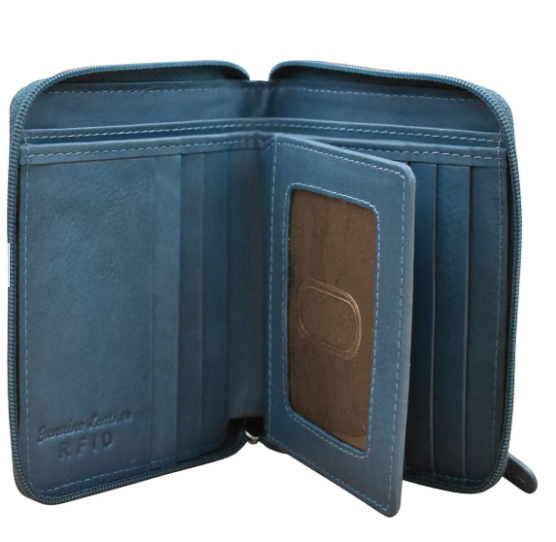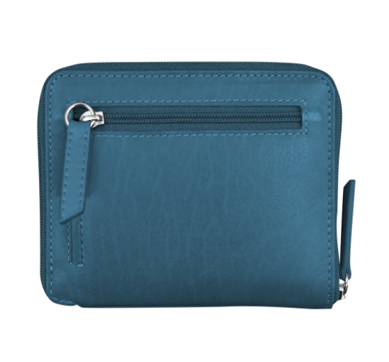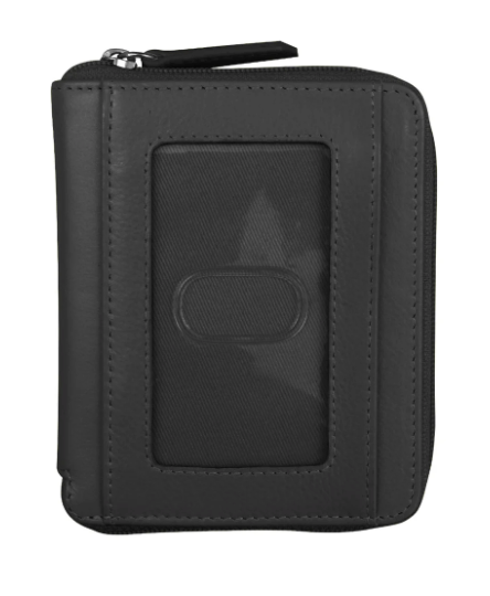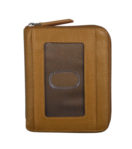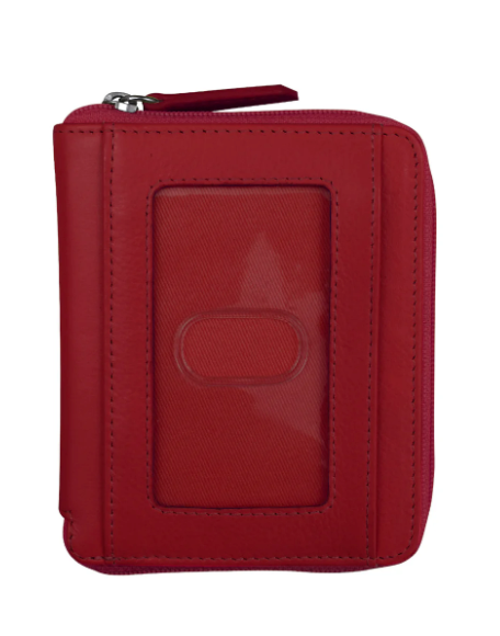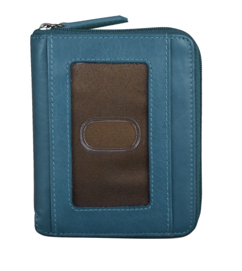This ILI zip around wallet is made from the finest quality genuine leather and comes with RFID protection. The exterior has an I.D. window and a zippered pocket in back. The interior has an I.D. window, credit card slots and a bill pocket.