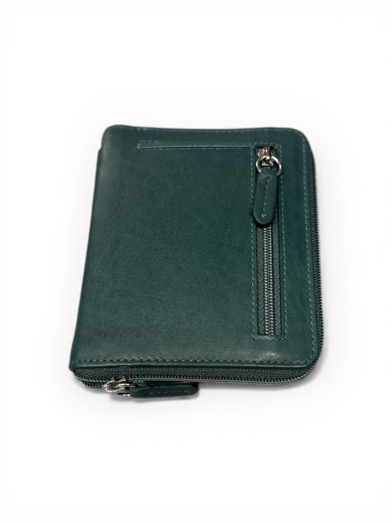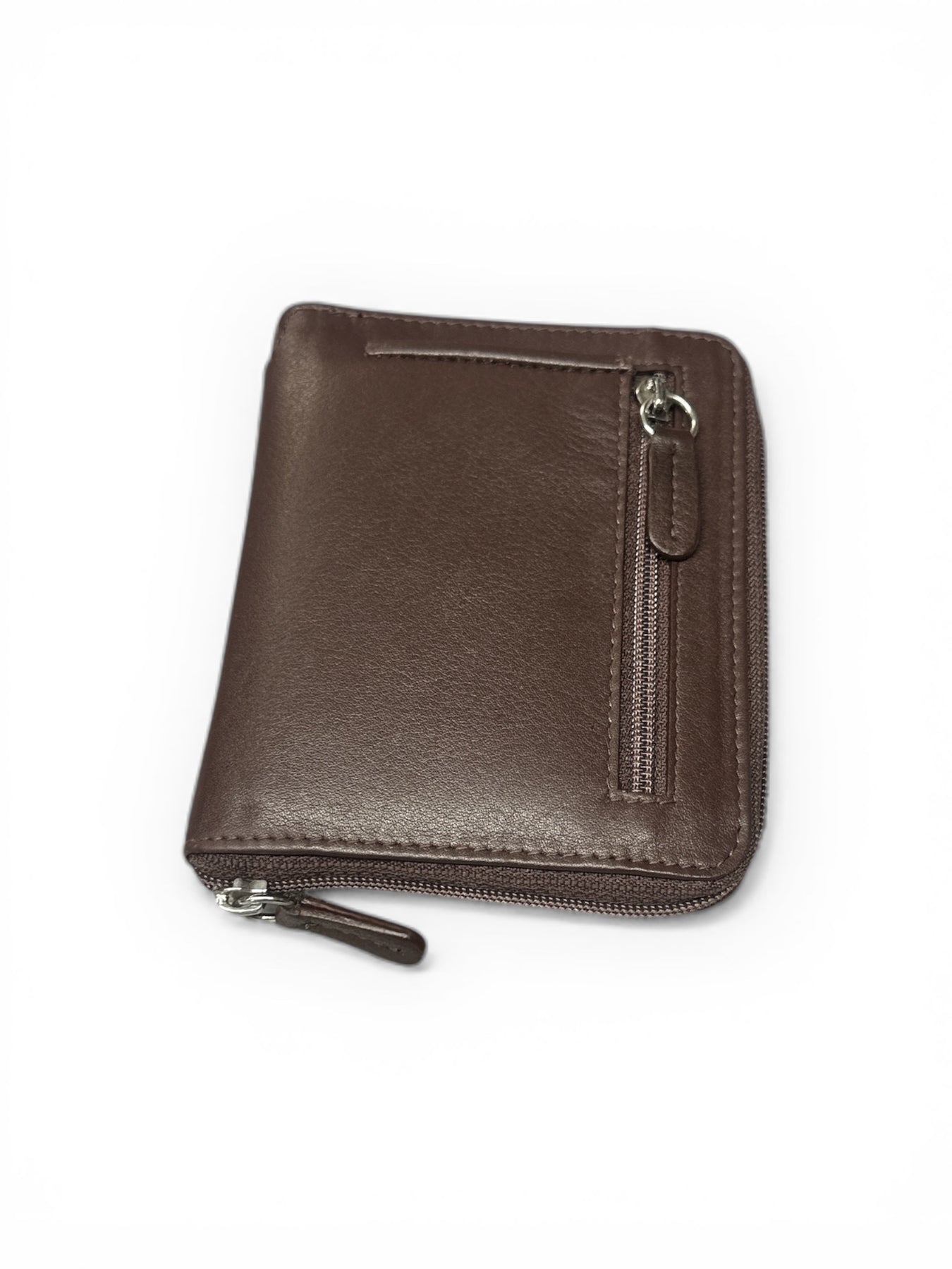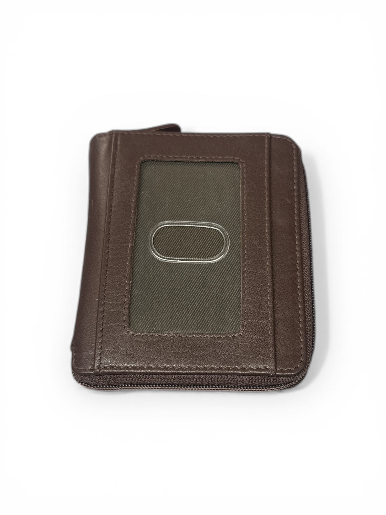 This ILI zip around wallet is made from the finest quality genuine leather and comes with RFID protection. The exterior has an I.D. window and a zippered pocket in back. The interior has an I.D. window, credit card slots and a bill pocket.