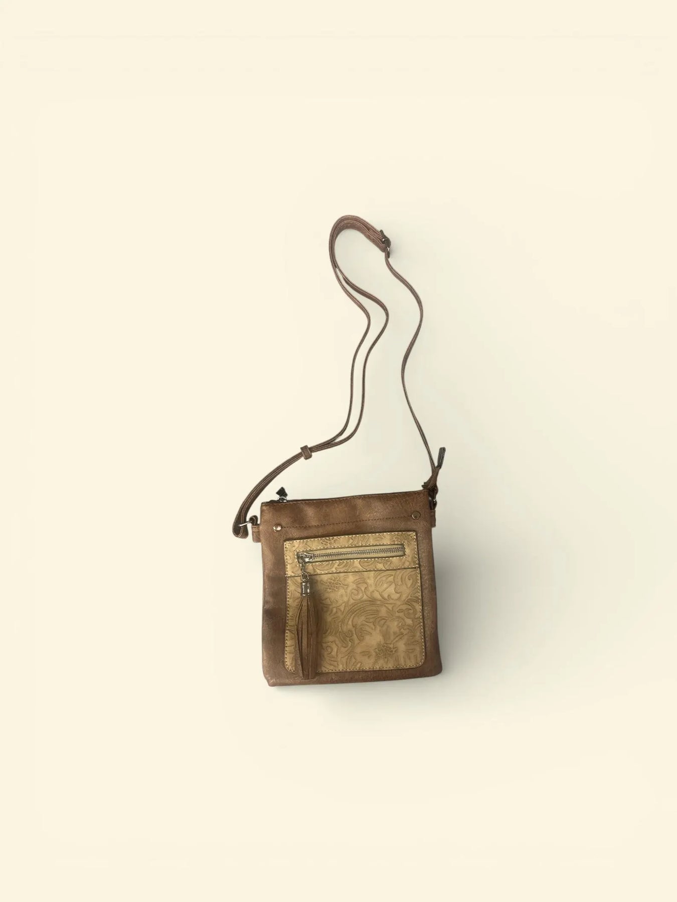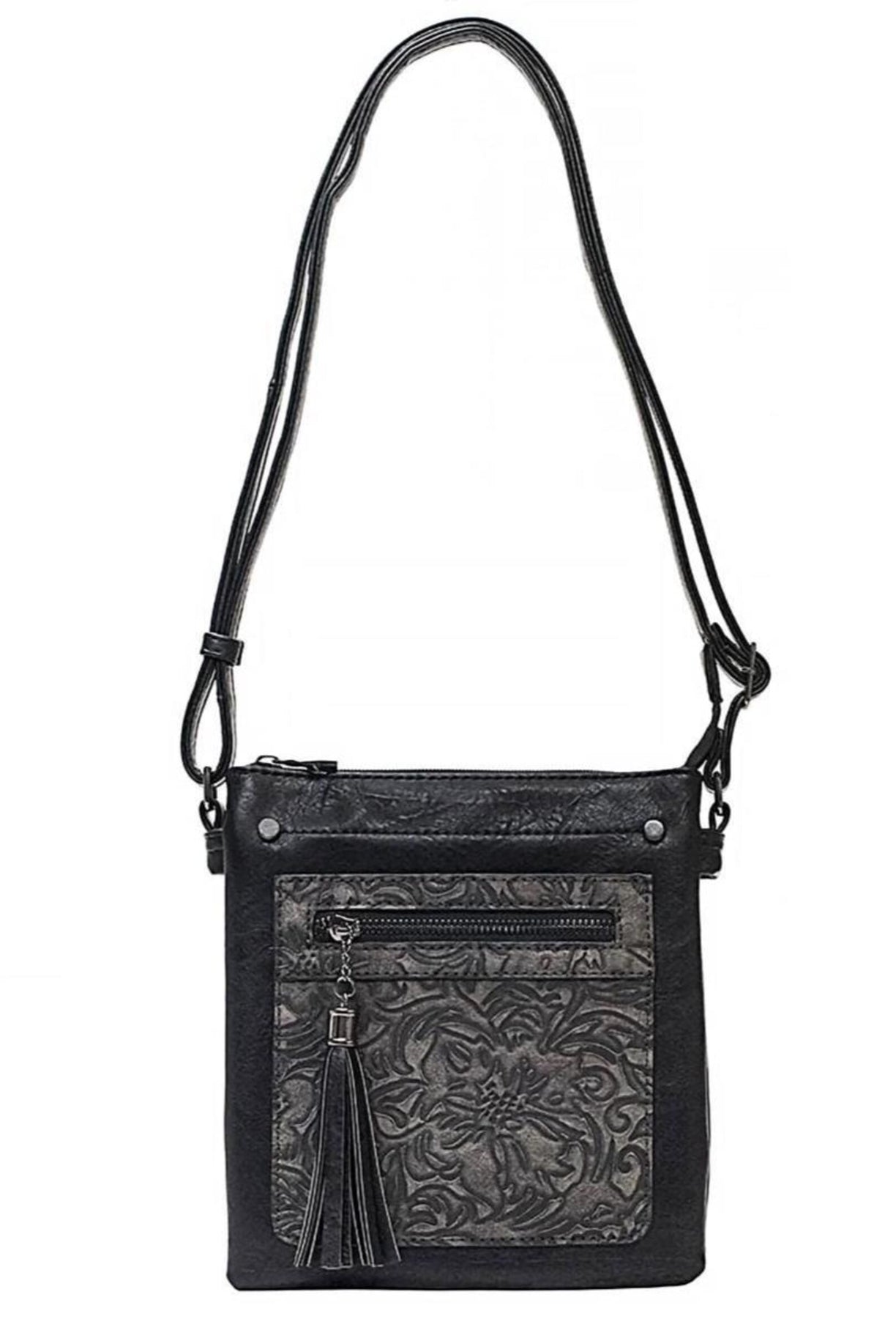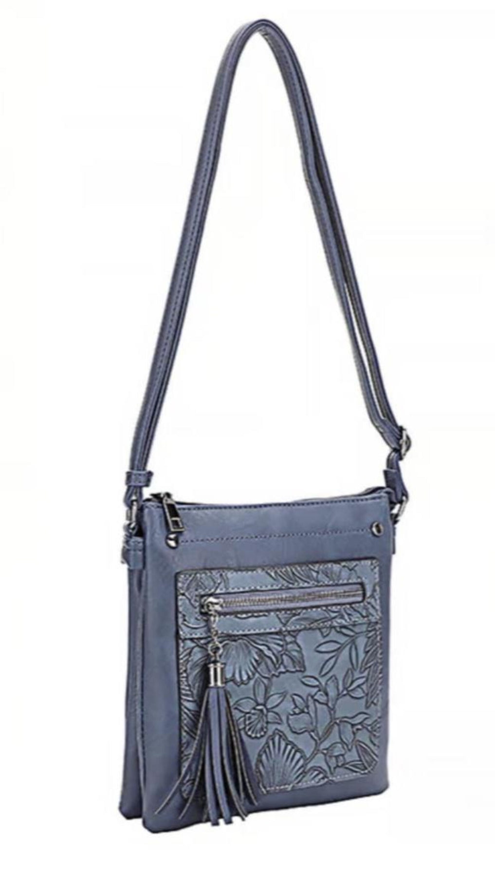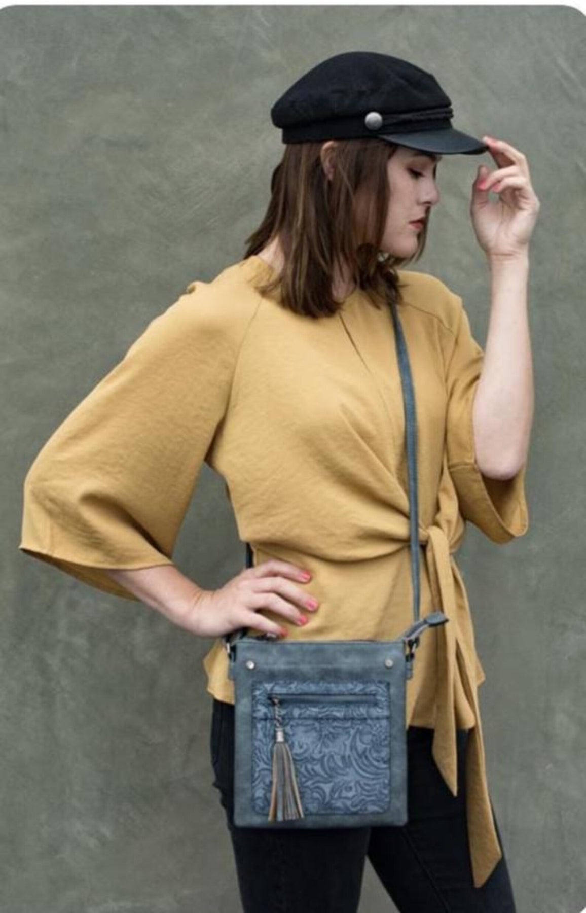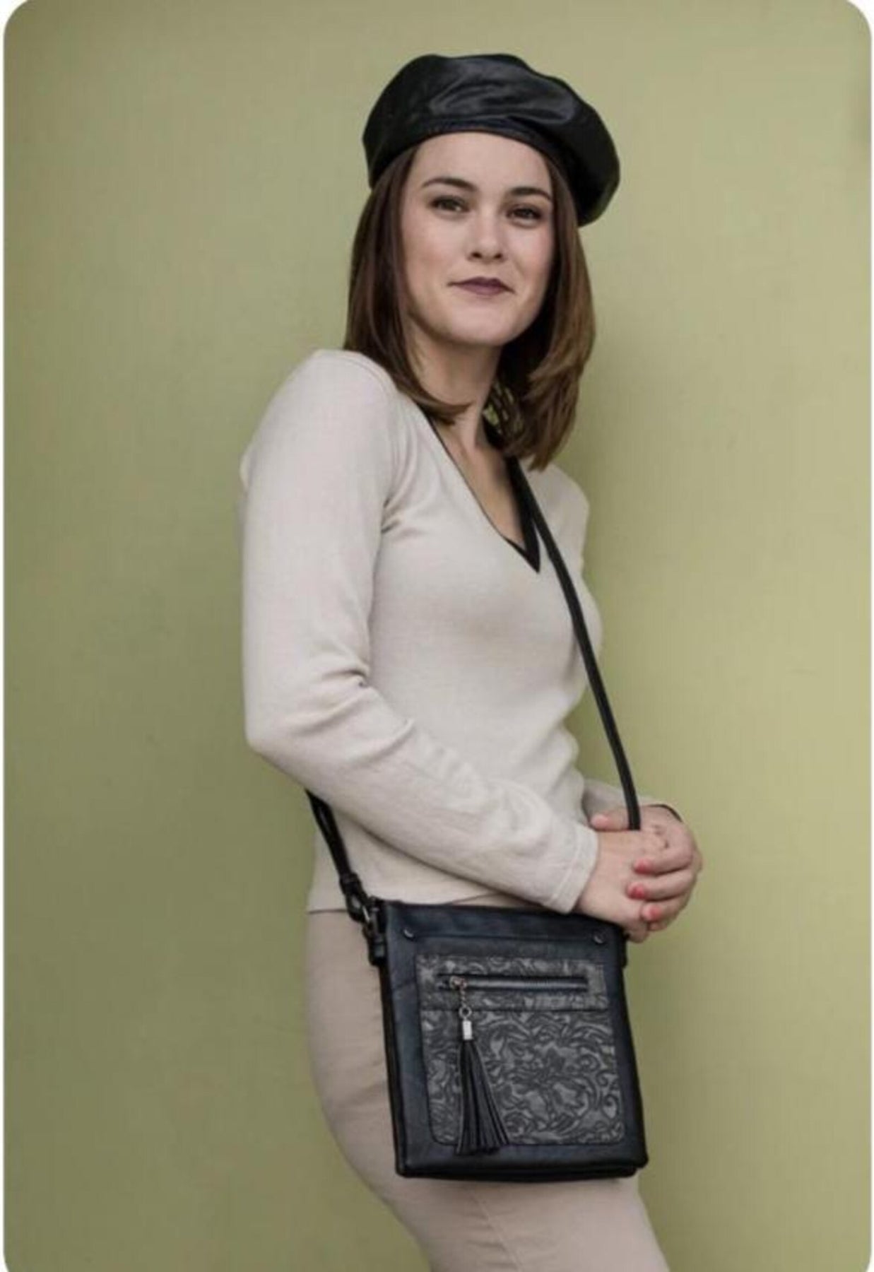 The Sara crossbody is one of our most popular handbags. It has a front zippered compartment and two zippered compartments on top as well as an adjustable strap. It’s the prefect size for an excursion around town with plenty of room for your keys and phone. The Sara has all the fantastic details you’ve come to expect from Liz Soto Handbags.
