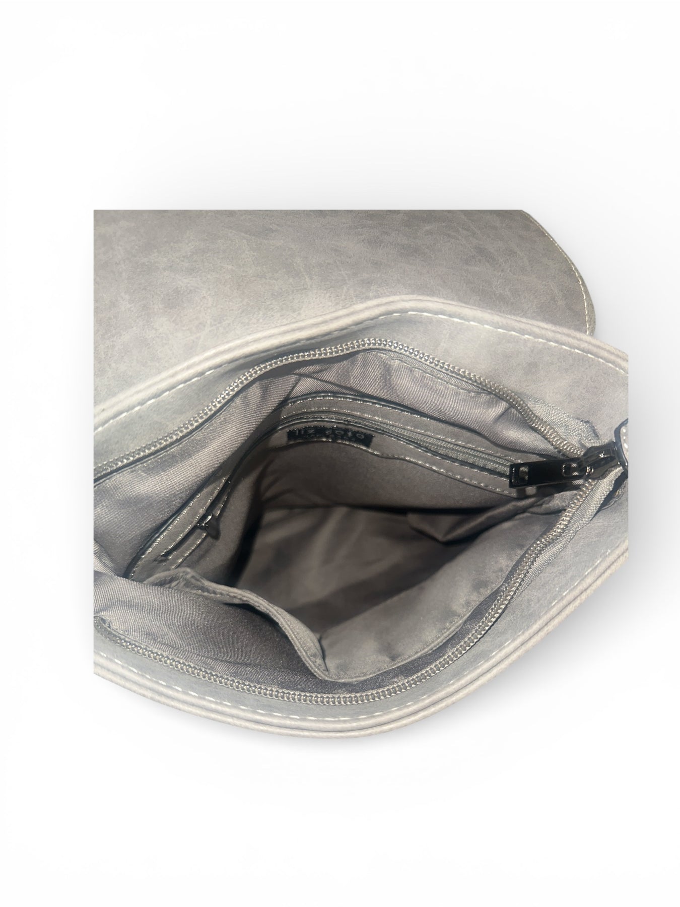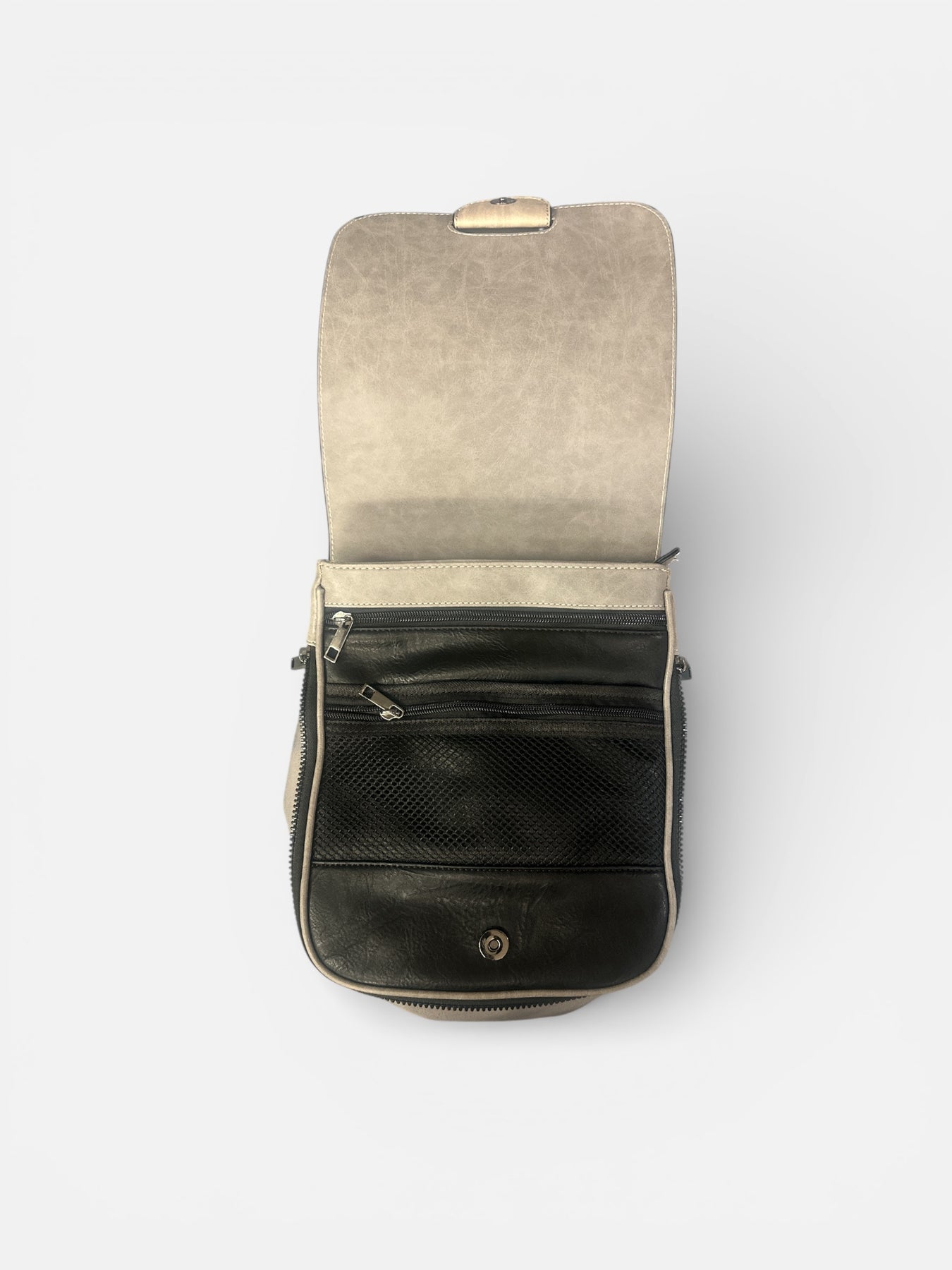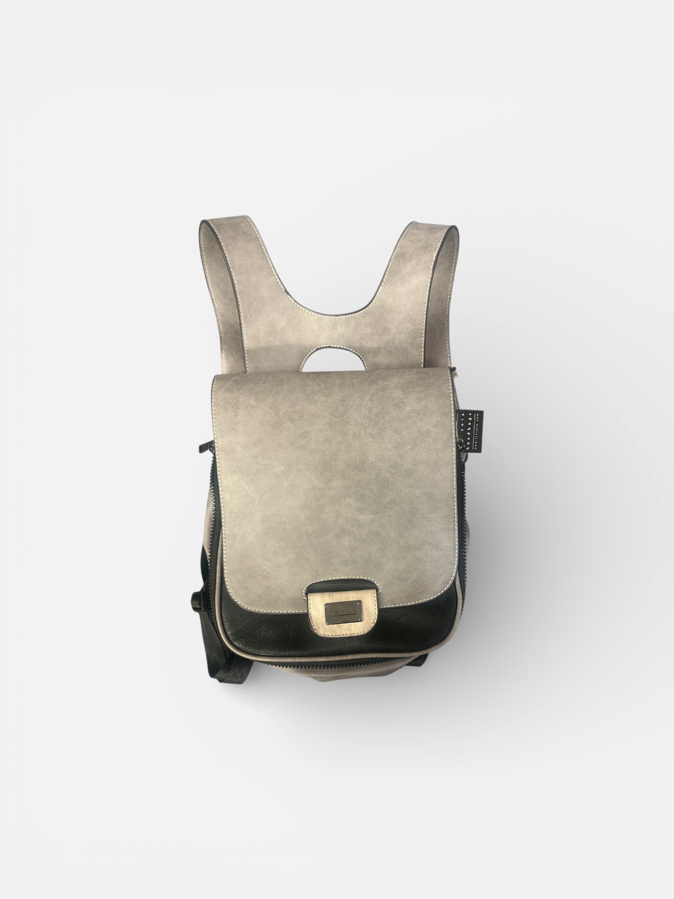 The Julia backpack is feature rich and very stylish. Under the magnetic flap is an organizer with room for your phone and sunglasses plus a zipper compartment that has more room for your wallet and other things. There is also an expansion zipper to increase the size of the storage area. On the back, is a velcro pocket for even more storage. Another versatile and very stylish handbag from Liz Soto.